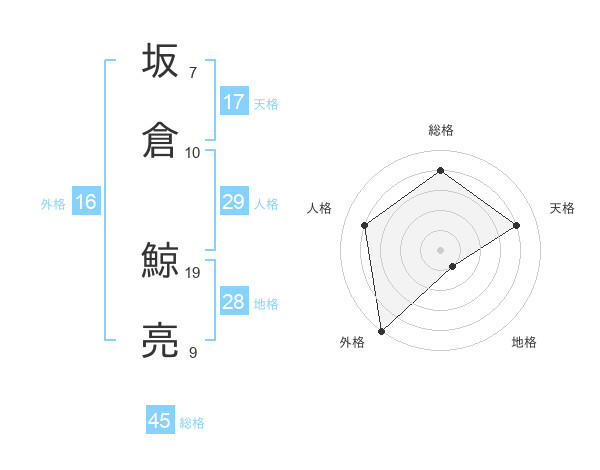 坂倉 鯨亮さんの総格は45画の4点!