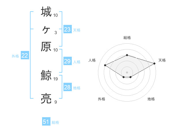 城ヶ原 鯨亮さんの総格は51画の3点!