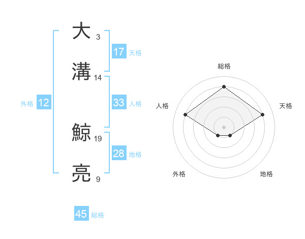 大溝 鯨亮さんの総格は45画の4点!