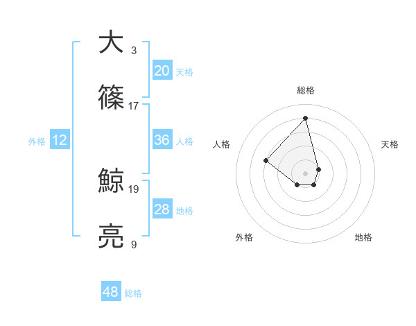 大篠 鯨亮さんを姓名の画数から五運を鑑定