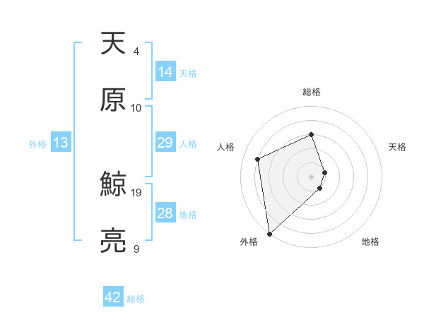 天原 鯨亮さんの外格は13画の5点!
