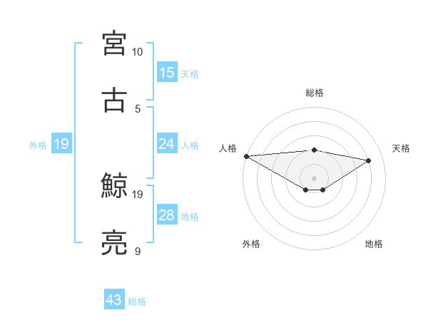 宮古 鯨亮さんの地格は28画の1点!
