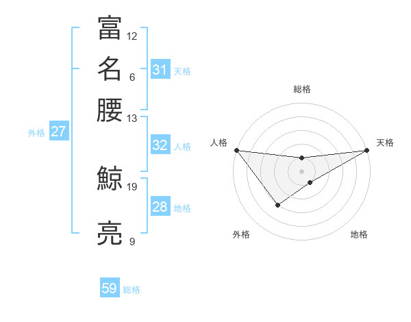 富名腰 鯨亮さんの総格は59画の1点!