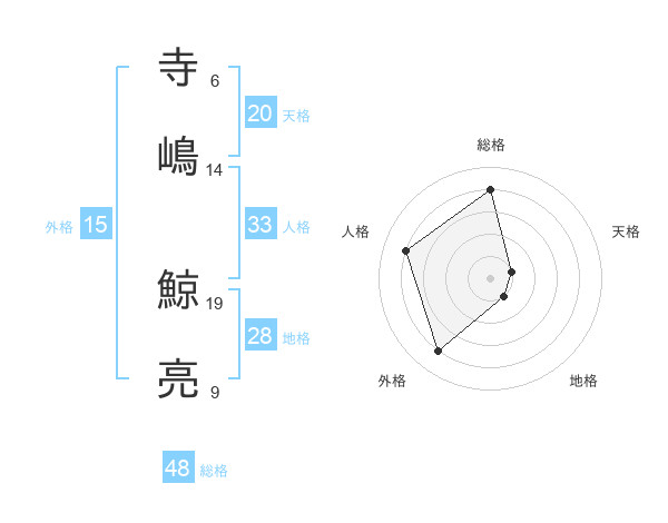 寺嶋 鯨亮さんを姓名の画数から五運を鑑定