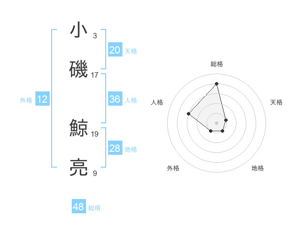 小磯 鯨亮さんを姓名の画数から五運を鑑定