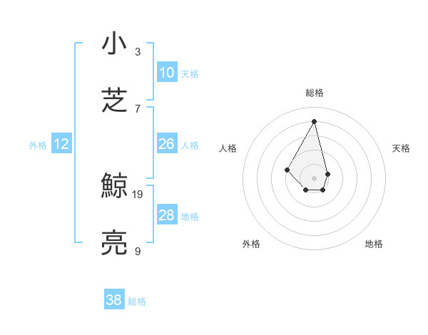 小芝 鯨亮さんを姓名の画数から五運を鑑定