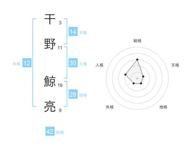 干野 鯨亮さんの総格は42画の3点!