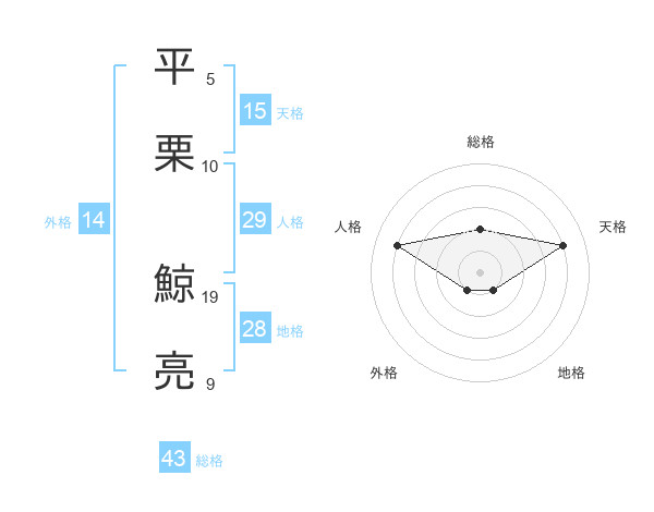 平栗 鯨亮さんを姓名の画数から五運を鑑定