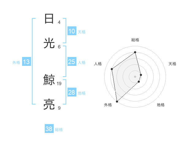 日光 鯨亮さんの総格は38画の4点!