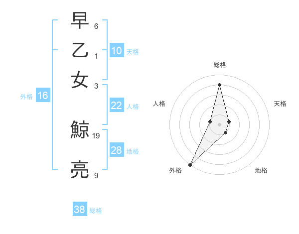 早乙女 鯨亮さんの総格は38画の4点!