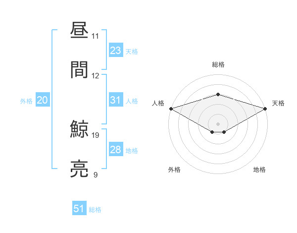 昼間 鯨亮さんの総格は51画の3点!