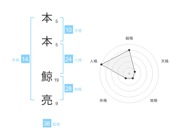 本本 鯨亮さんの総格は38画の4点!