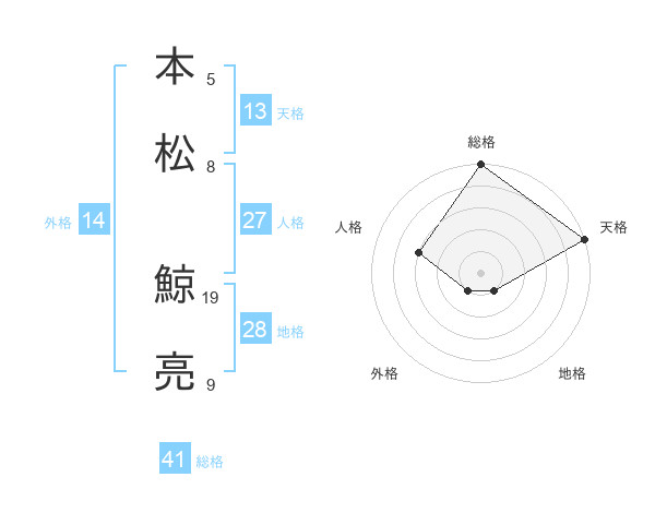 本松 鯨亮さんの総格は41画の5点!