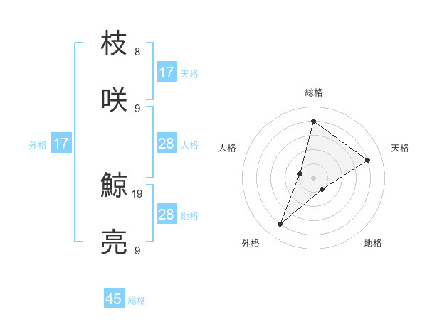 枝咲 鯨亮さんを姓名の画数から五運を鑑定