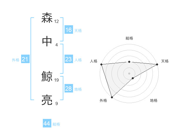 森中 鯨亮さんの天格は16画の5点!