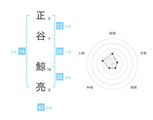 正谷 鯨亮さんの総格は40画の2点!