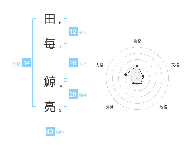 田毎 鯨亮さんの総格は40画の2点!
