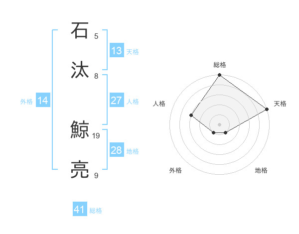 石汰 鯨亮さんの総格は41画の5点!