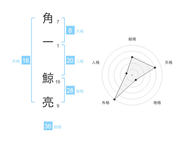 角一 鯨亮さんの天格は8画の4点!