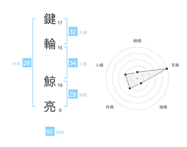 鍵輪 鯨亮さんを姓名の画数から五運を鑑定