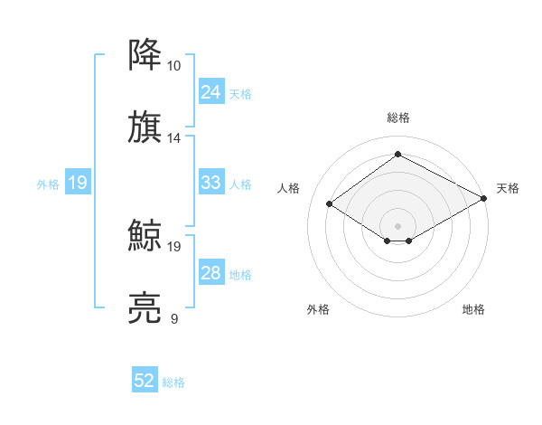 降旗 鯨亮さんの総格は52画の4点!