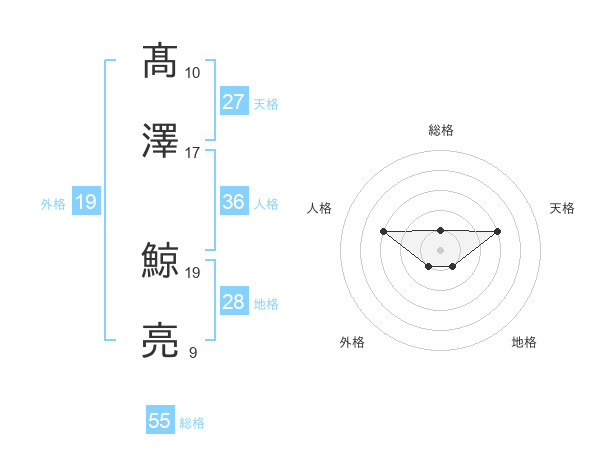 髙澤 鯨亮さんの総格は55画の1点!