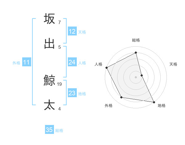 坂出 鯨太さんの総格は35画の4点!