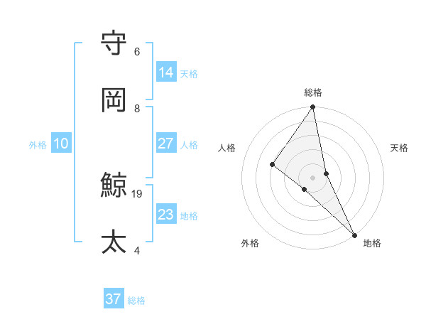 守岡 鯨太さんの総格は37画の5点!