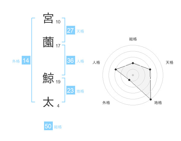 宮薗 鯨太さんの総格は50画の2点!