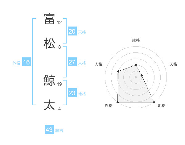 富松 鯨太さんの外格は16画の5点!