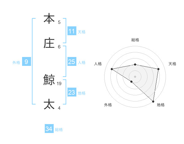 本庄 鯨太さんを姓名の画数から五運を鑑定