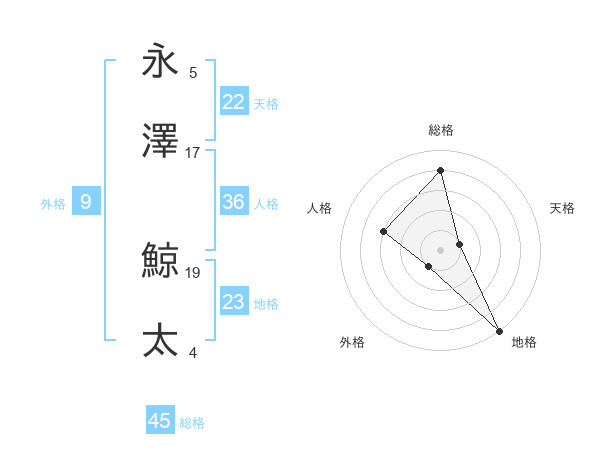 永澤 鯨太さんを姓名の画数から五運を鑑定