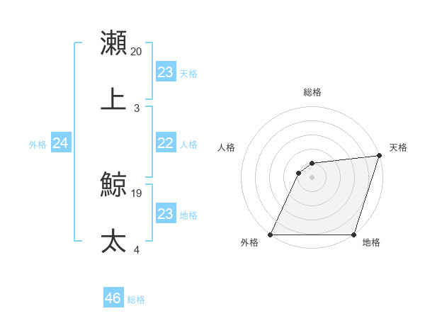 瀬上 鯨太さんを姓名の画数から五運を鑑定