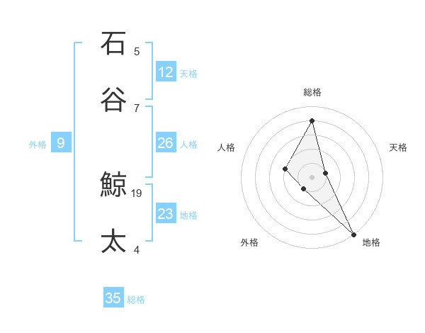 石谷 鯨太さんを姓名の画数から五運を鑑定