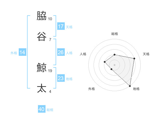 脇谷 鯨太さんを姓名の画数から五運を鑑定