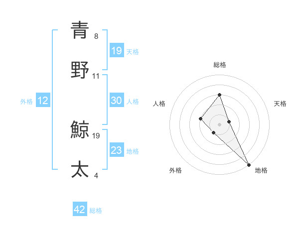 青野 鯨太さんの天格は19画の1点!