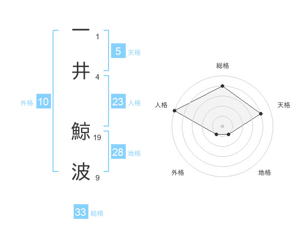 一井 鯨波さんを姓名の画数から五運を鑑定