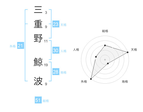 三重野 鯨波さんを姓名の画数から五運を鑑定