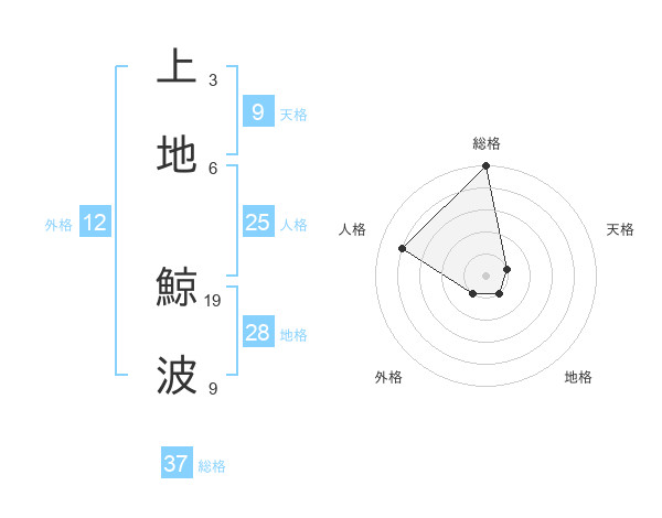 上地 鯨波さんの総格は37画の5点!