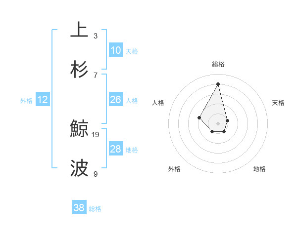 上杉 鯨波さんを姓名の画数から五運を鑑定