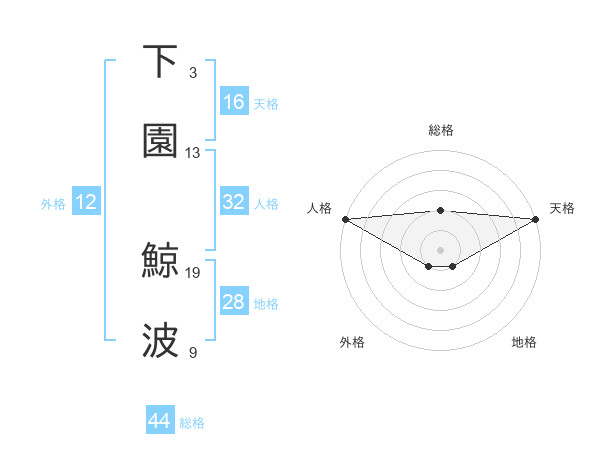 下園 鯨波さんの総格は44画の2点!
