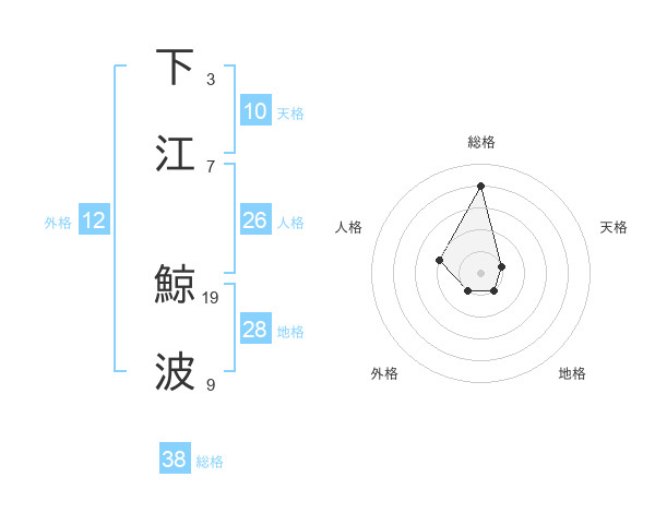 下江 鯨波さんの総格は38画の4点!