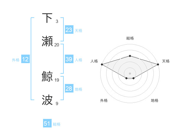 下瀬 鯨波さんを姓名の画数から五運を鑑定