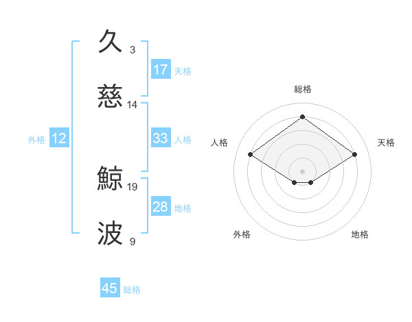 久慈 鯨波さんの総格は45画の4点!