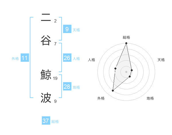 二谷 鯨波さんを姓名の画数から五運を鑑定