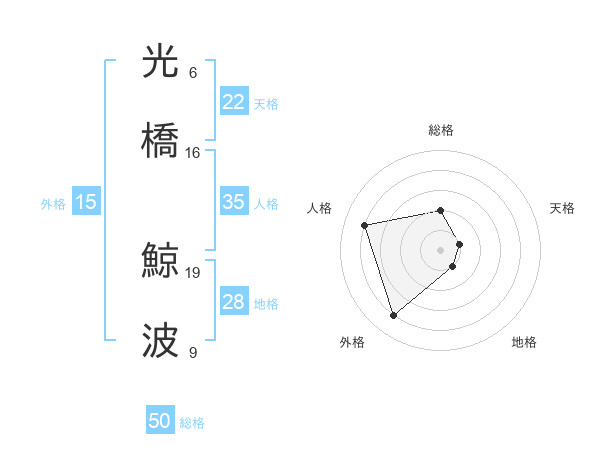 光橋 鯨波さんの総格は50画の2点!