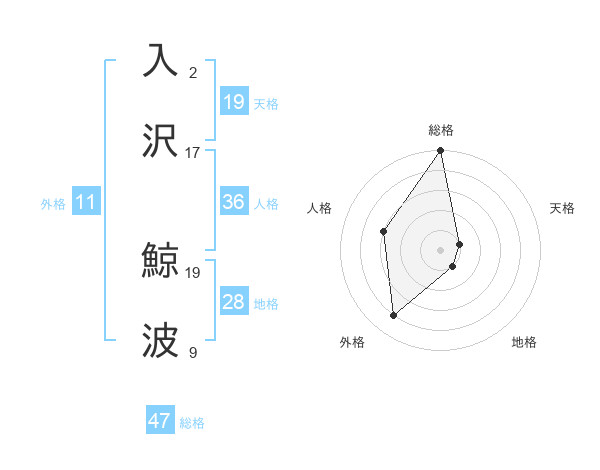 入沢 鯨波さんを姓名の画数から五運を鑑定