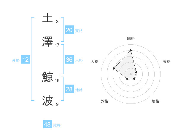 土澤 鯨波さんの総格は48画の4点!