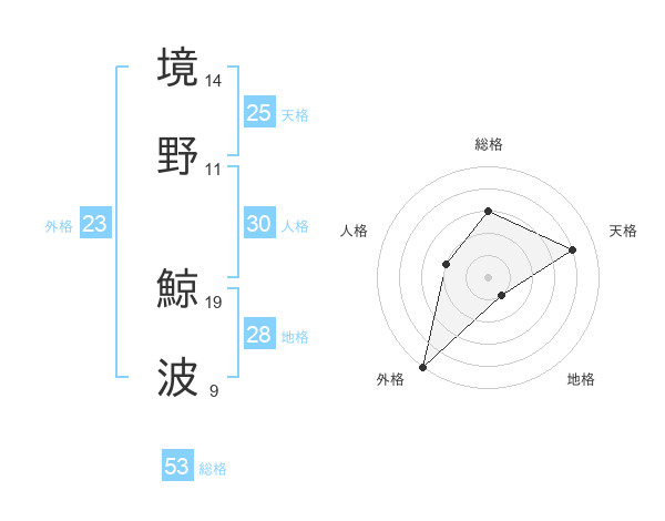 境野 鯨波さんを姓名の画数から五運を鑑定