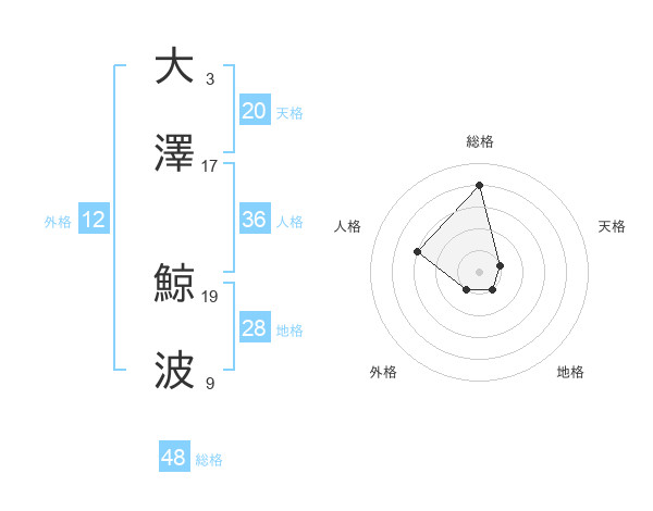 大澤 鯨波さんの総格は48画の4点!
